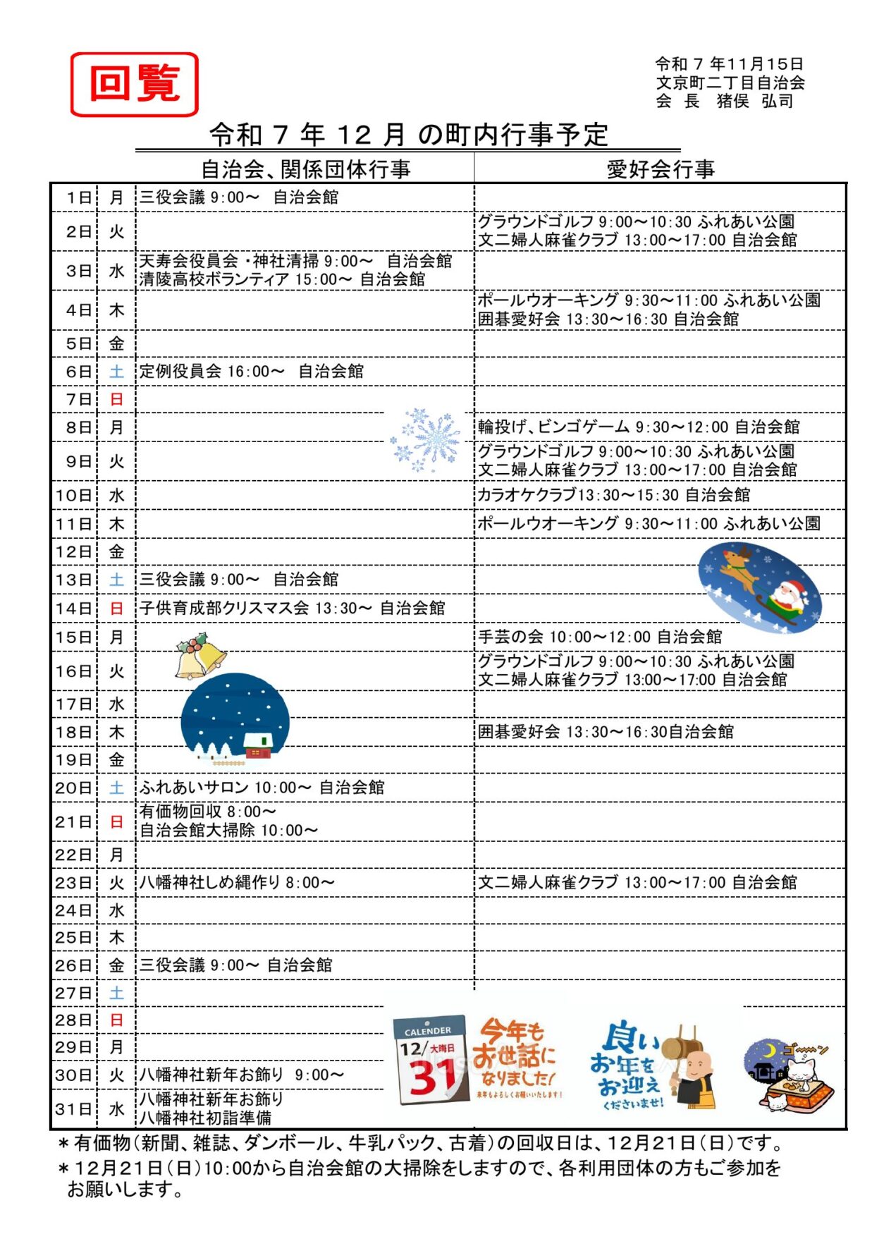 2025年12月 町内行事予定