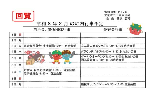 2026年2月 町内行事予定