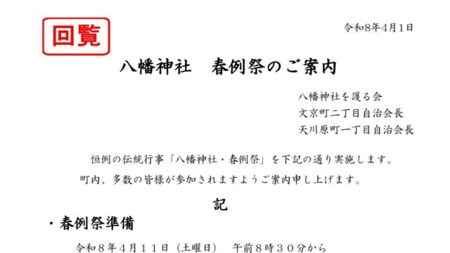 2026年4月 八幡神社 春例祭のご案内