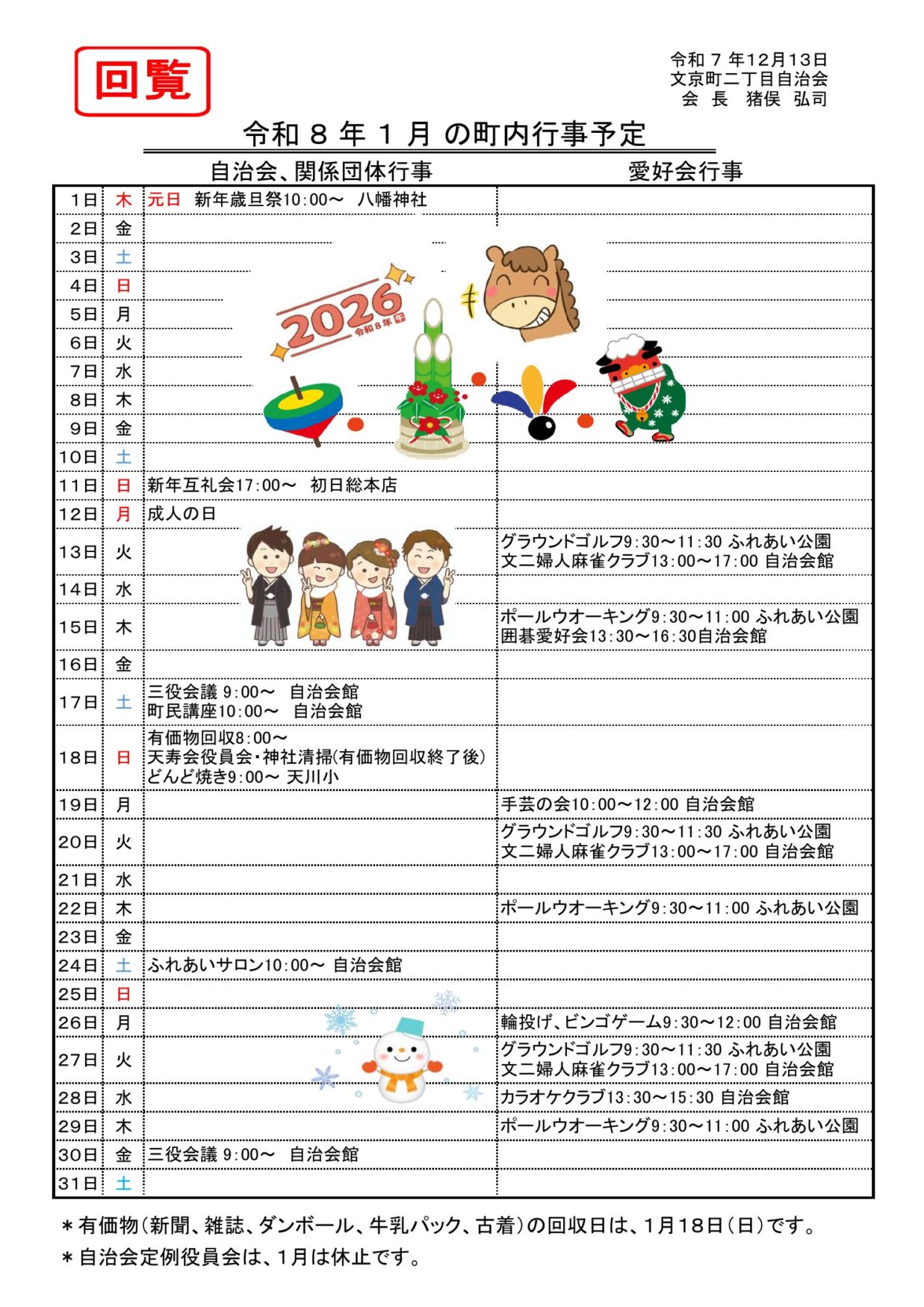 2026年1月 町内行事予定
