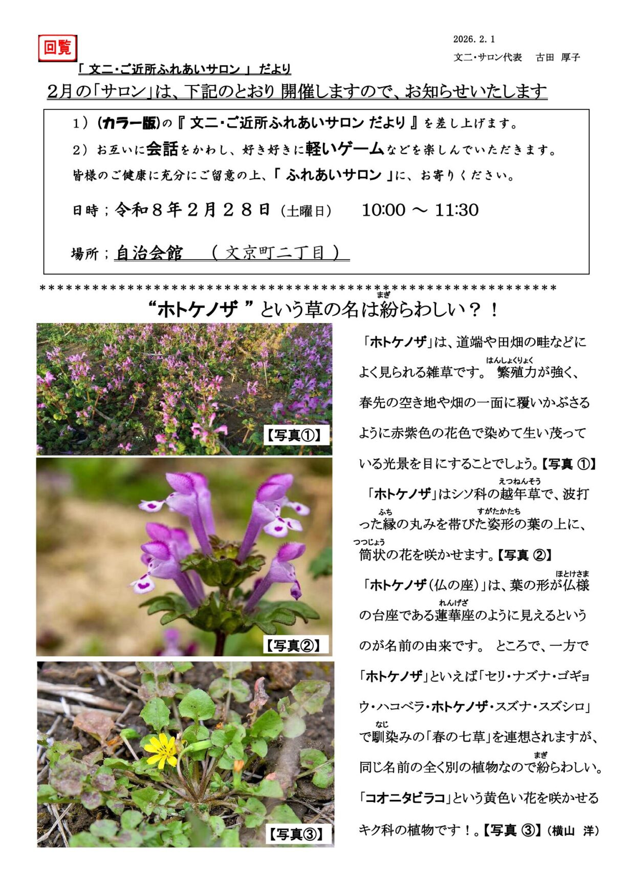 2026年2月 ふれあいサロンだより