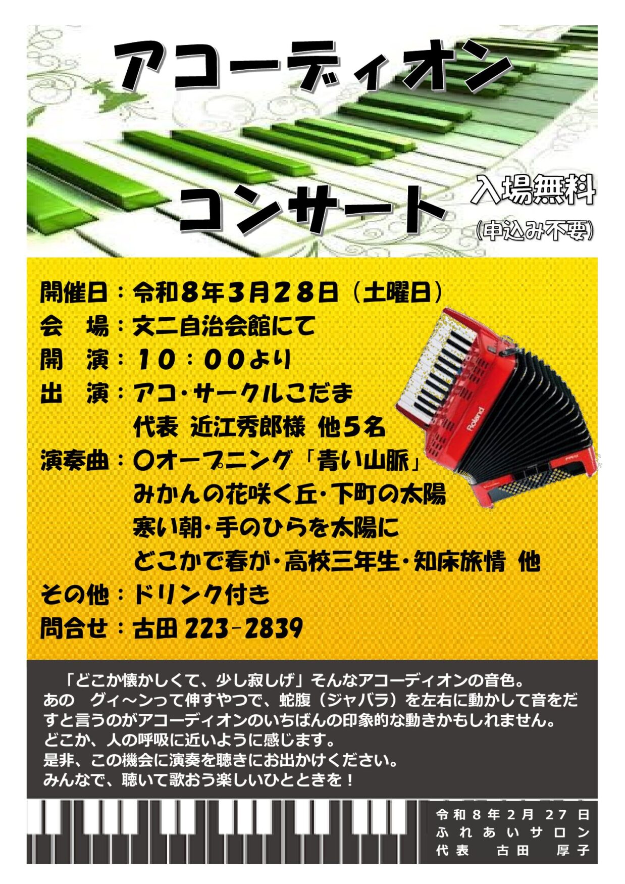 2026年3月 アコーディオン コンサート
